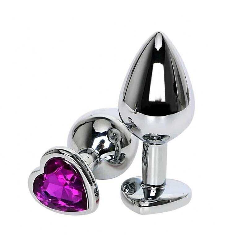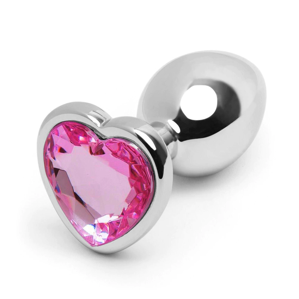 Plug anal de luxo em aço inoxidável possui forma cônica e um detalhe extremamente lindo de pedra lapidada em formato de coração na sua base.