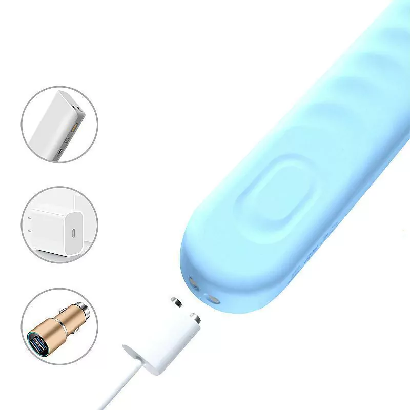 Para ligar/desligar aperte o botão e segure por 3 segundos, aperte 2 vezes para iniciar a vibração.